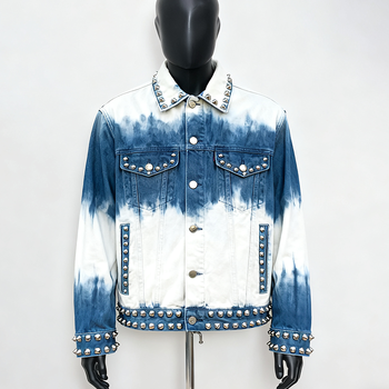 Doger Tùy Chỉnh Nổi Người Đàn Ông Denim Áo Khoác Sơn Màu Đỏ Thời Trang Phố Đau Khổ Jean Áo Khoác Người Đàn Ông Với Đinh Tán Và Rhinestone